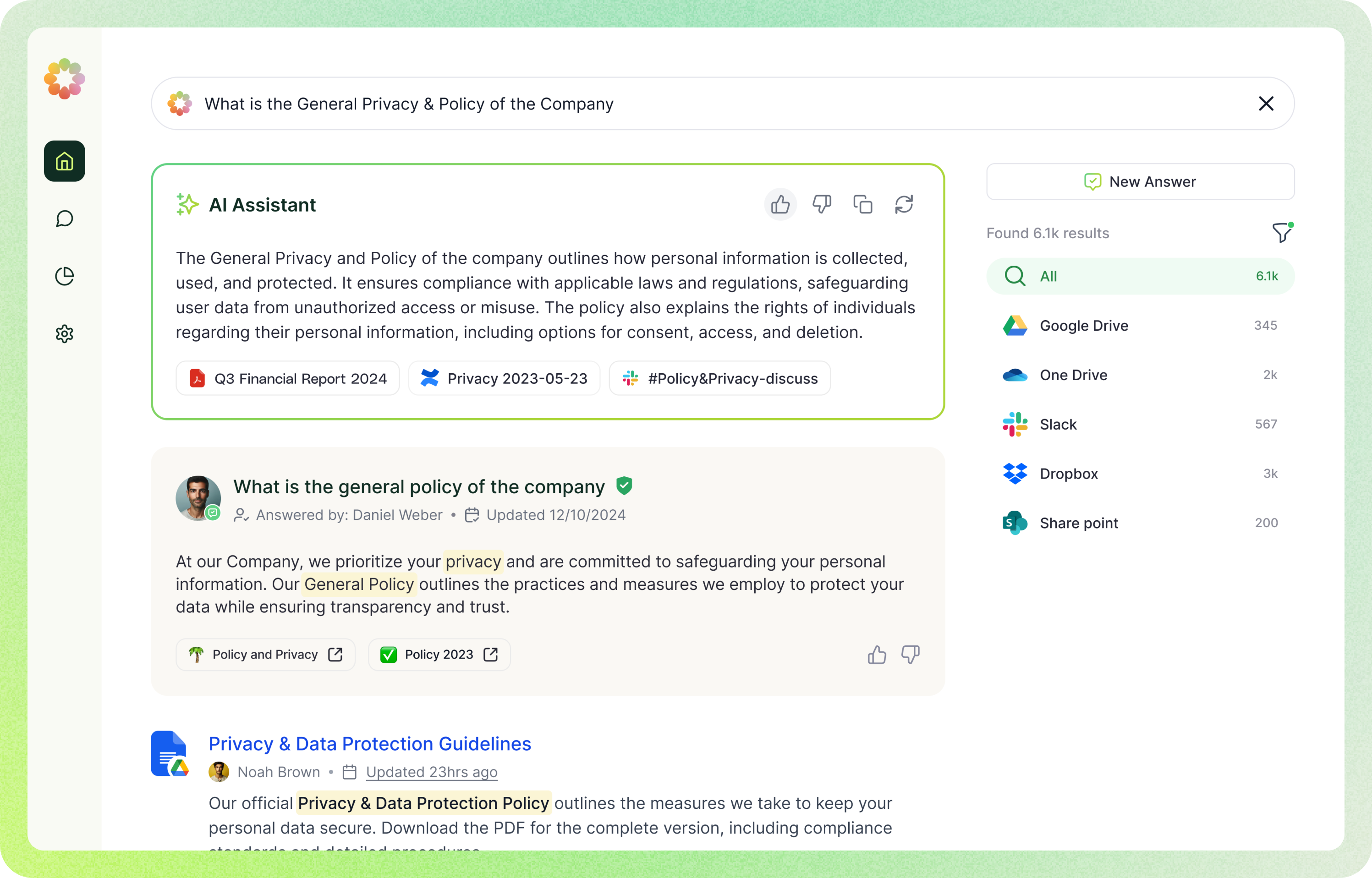 Many companies struggle with fragmented data scattered across multiple tools and systems, making it hard to find the right information quickly. Traditional search methods don’t understand context or meaning, so employees waste time hunting through documents, tickets, emails, and apps.